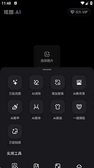 整体界面设计简洁明了,功能分类清晰,所有操作都采用一键式完成模式,无需专业技能即可快速完成修图与创作,大幅降低视觉创作的门槛。