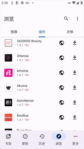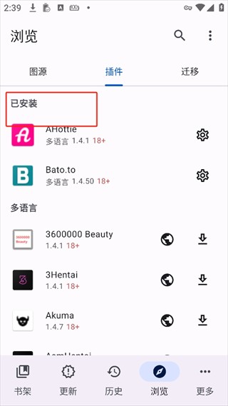 7、根据你想看的漫画类型,选择并安装对应的插件。