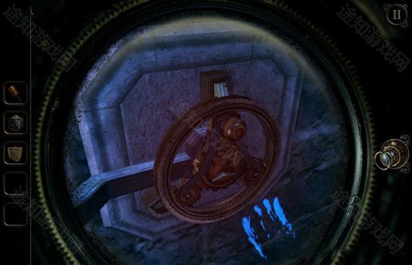 这个装置比较精密,转动一下上面的机关,它就会变成一条钥匙。获得钥匙后,移步至书房(第一个房间)探索未曾动过的书柜。