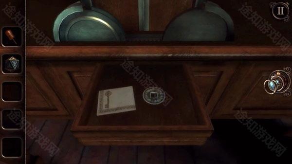 离开书房,回到塔罗牌游戏机前,将硬币放到入口中,等机器人掀开第一章塔罗牌后,你会获得第二把钥匙。
