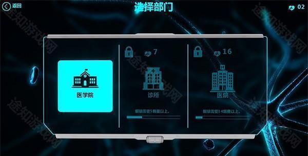 初进游戏,可以看到部门需要相应的等级才能解锁,笔者于是选择医学院部门下的实习关卡,该关卡作为新手初识这款游戏再合适不过了。