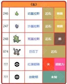 朱:班吉拉斯家族,巨岩丁,红莲铠骑,故勒顿。还有没有公布的古代种。顿甲(古代种)、胖丁(古代种)、火神蛾(古代种)、败露球菇(古代种)、三合一磁怪(古代种)、梦妖(古代种)、暴飞龙(古代种)和水君。